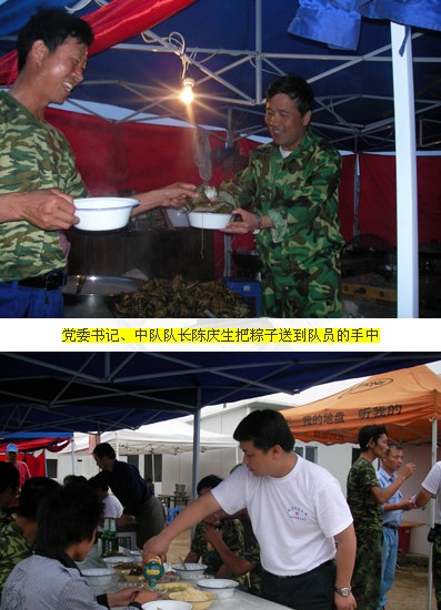 “獨在異鄉為異客,每逢佳節倍思親”。6月8日是中國的傳統端午佳節,集團公司領導時刻惦念著參加援川過渡房建設的全體隊員。6月6日股份公司江中明總經理受集團于國家董事長的委托,親自帶隊前往災區工地看望了全體隊員,轉達了于國家董事長以及集團公司數千名員工最崇高的敬意和最衷心地節日問候。并高度贊揚了全體隊員深明大義,舍小家一切為災區人民著想,不畏艱難勇于吃苦,樂于奉獻的崇高思想境界。他號召全體隊員心系災區人民,繼續發揚勇于拼搏,敢于戰勝一切困難的大地精神,牢記于國家董事長和大地建設全體員工的重托,勤奮努力地工作,為災區人民早日進住過渡房做出貢獻。全體援川隊員十分激動,感謝于國家董事長和全體員工的關心和厚愛,紛紛表示:一定加倍努力地工作,再創大地建設援川過渡房建設新的輝煌
