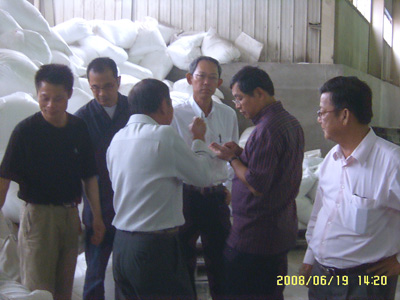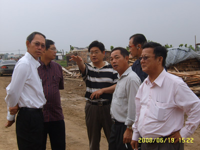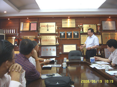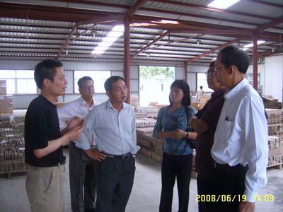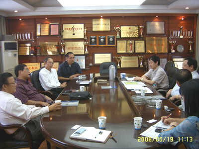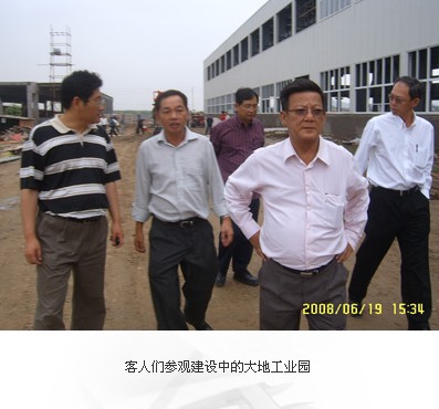 2008年6月19日,新加坡一行四人來我公司考察。公司董事長于國家、總工劉亞非等與之深入座談。下午,客人們在公司相關人員的陪同下興致勃勃地參觀了在建的公司總部大樓、文化石生產車間以及正在如火如荼建設中的大地工業園。