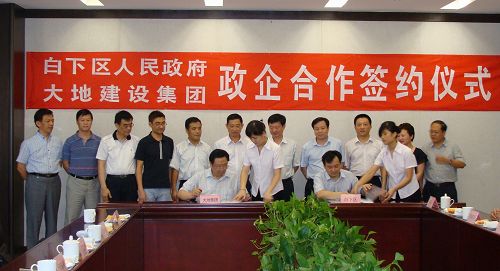 南京大地建設集團有限責任公司與南京市白下區政府于2010年8月6日下午在白下區政府第五會議室舉行了“政企合作簽約儀式”。