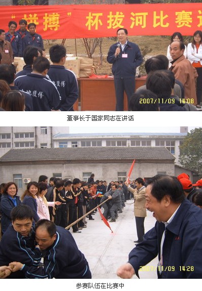 2007年11月9日,風和日麗。集團機關大院內彩旗招展,鼓樂喧鳴。公司在新落成的藍球場舉行了“拼搏杯”冬季拔河比賽。機關、股份、路橋、張家港、地元、呈元、構件廠、機電、房產等十幾家在寧單位都統一著裝,派出整體隊容參加比賽。