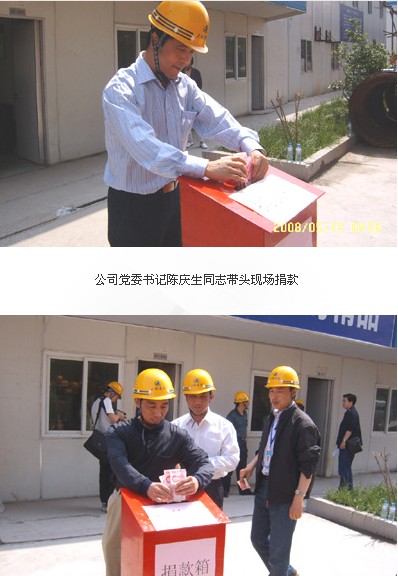 2008年5月15日上午,公司在黨委、工會(huì)的組織下來到了在建的省中醫(yī)院二附院的施工現(xiàn)場進(jìn)行賑災(zāi)捐助活動(dòng)。