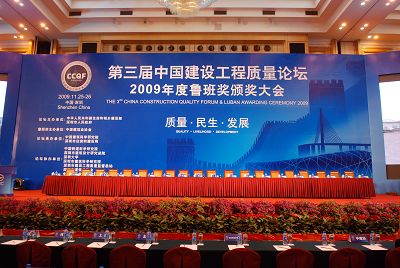 第三屆中國建設工程質量論壇暨2009年度魯班獎頒獎大會于11月25日、26日在深圳召開。原建設部副部長、中國建筑業協會會長鄭一軍、住房和城鄉建設部副部長郭允沖出席會議并作重要講話。廣東省委常委、深圳市人民政府代市長王榮致辭,深圳市委常委、副市長呂銳鋒主持會議。我大地建設集團劉亞非副總裁、股份公司江中明總經理與來自各地的獲獎企業代表、各地建筑企業協會領導、各相關單位代表共1000多人出席會議。