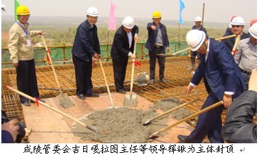 內蒙成陵管委會吉日嘎拉圖主任攜同管委會郝門克副書記、那楚格副主任、奇景陽副主任、宋子斌副調研員以及建設局張局長、財政局蔚局長、人事局敖副局長一行參加了封頂儀式。吉日嘎拉圖主任在封頂儀式的講話中對我公司的前期工作予以了肯定,對項目部嚴謹的工作態度,嚴格履行合同按圖規范施工的工作作風給予了高度的評價,并對項目部寄予了更高的期望。我公司項目經理桂在友同志受江中明總經理的委托,代表公司作了表態發言,他表示:項目部的全體員工決不辜負管委會的期望,將繼續認真貫徹落實公司的各項工作方針,按照江中明總經理的要求,嚴格管理精心施工,用我們大地人的勤奮努力把成吉思汗博物館工程打造成成陵的精品,向成陵人民、成陵管委會交上一份滿意的答卷。 |