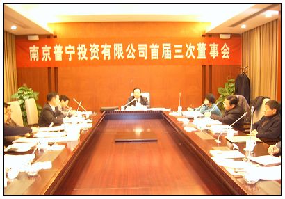 2009年1月21日普寧投資有限公司首屆三次董事會在金陵江濱江天廳召開。會期一天。 公司董事會董事于國家、陳慶生、鄒志堅、伍貽安、江中明、朱昌盧參加了會議。