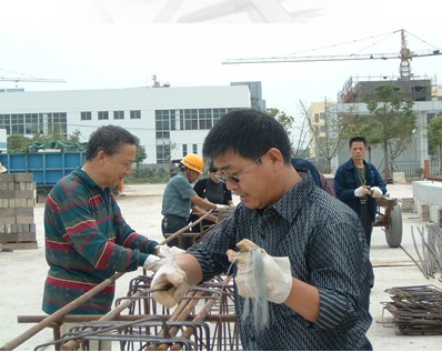 各級領(lǐng)導(dǎo)在生產(chǎn)臺面進行鋼筋骨架制作(二)