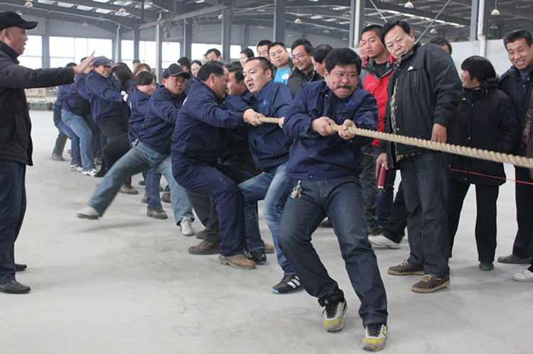 “嘟”,隨著一聲清脆的哨聲,新型建材公司寬敞明亮的文化石車間里立時沸騰起來,“加油”“加油”助威的吶喊聲此起彼伏,響成一片,氣氛熱烈。12月21日下午,公司拔河比賽在這里舉行,八只代表隊捉對較量。此次拔河比賽結(jié)合“迎公司60華誕”的主題,吸引了員工積極參與,激發(fā)了員工企業(yè)榮譽感,凝聚了團結(jié)協(xié)作精神,已成為公司的傳統(tǒng)比賽項目。經(jīng)過激烈角逐,新型建材公司奪得第一,機電公司、股份公司分別獲得第二和第三名。
