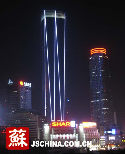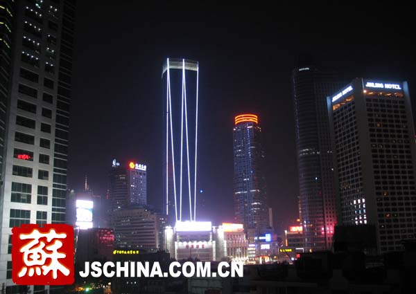 位于南京市中心的新百新大樓在夜晚發(fā)出璀璨的光芒,點綴著南京的夜空。