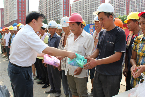 炎炎夏日,暑氣逼人。連日來,我市出現(xiàn)持續(xù)高溫天氣,帶著對一線施工人員濃濃的關愛之情,8月14日下午,南京市城建工會主席劉斌等領導來到我公司匯杰新城項目部工地送清涼,集團公司黨委書記、工會主席陳慶生及股份公司書記陳興國等領導陪同慰問。