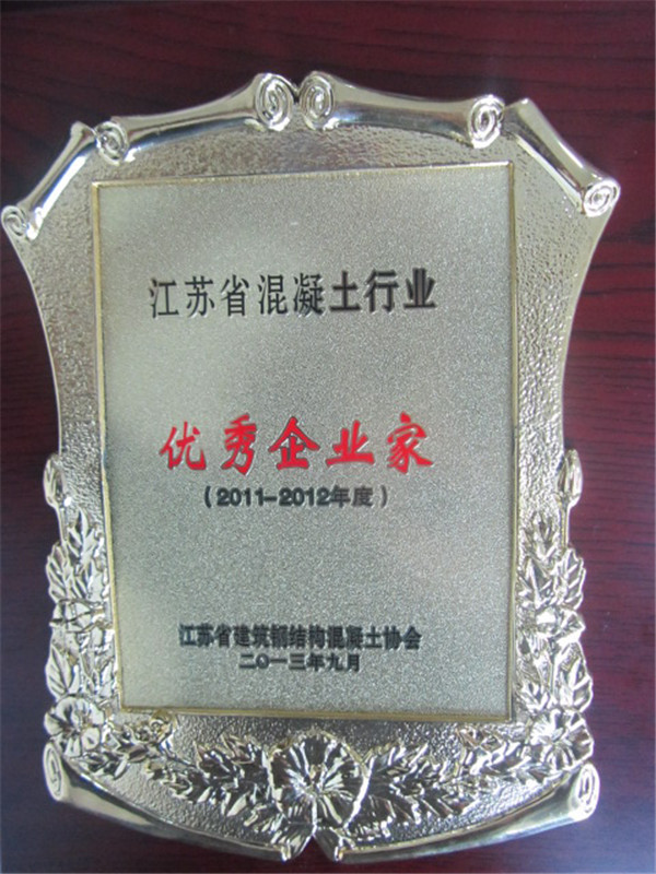 2013年9月28日,南京大地建設集團新型建筑材料有限公司被江蘇省建筑鋼結構混凝土分會評為“2011-2012年度江蘇省混凝土行業最佳企業”,于春同志榮獲“2011-2012年度江蘇省混凝土行業優秀企業家”稱號。