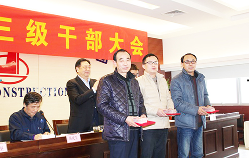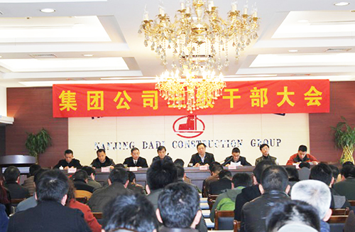 轉型升級創佳績,凝心聚力繪新圖。2014年3月2日下午,集團公司在大地大廈30樓會議室召開三級干部大會,對2014年各項工作進行全面動員和部署。于國家董事長做重要講話,伍貽安總裁做工作報告,會議由黨委書記陳慶生主持。集團公司領導及子、分公司領導班子成員、項目經理、車間主任等共150人參加了大會。會上表彰了2013年度“五星十佳”,宣讀了人事任命,簽訂新一輪目標責任狀。