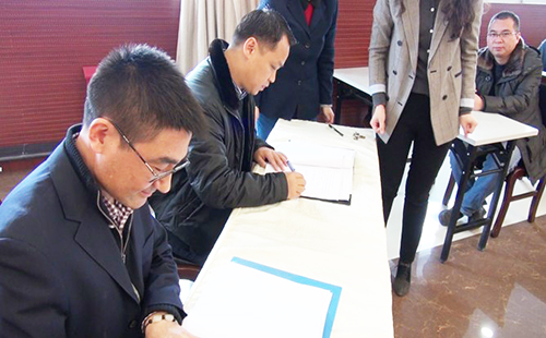 在歡快的樂曲聲中,伍貽安總裁和經營單位簽訂了新一輪經濟責任狀。