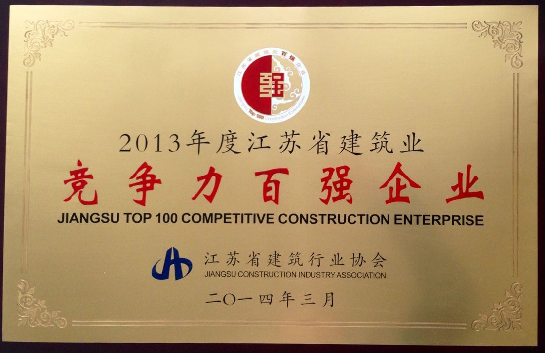 2014年3月,集團公司在江蘇省建筑業協會舉辦的2013年度“雙百強”企業評選的活動中脫穎而出,再次榮膺“江蘇省建筑業競爭力百強企業”稱號。