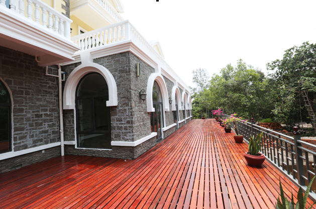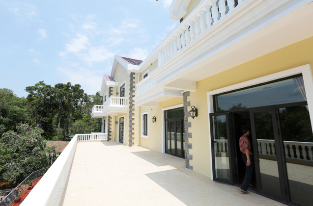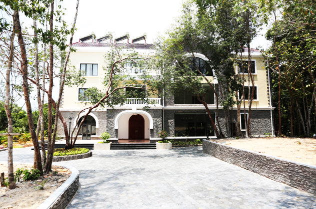 日月灣是是柬埔寨的旅游投資熱土,吸引了多方人士前來開發。我公司的賓館面積最大,檔次最高,最先具備接待能力。日月灣常年如春。別墅坐落在綠樹環抱之中,離海邊僅50米,憑窗望去,一望無垠的大海盡收眼底。別墅外觀歐式風格,上部奶黃色涂料,下部文化石鑲嵌,屋面紅色琉璃瓦陽光下熠熠閃亮,內部裝修全部是從國內運來的高檔材料,8頭和10頭的紫銅色吊燈富麗堂皇,全套紅木家具頗顯東南亞風格。