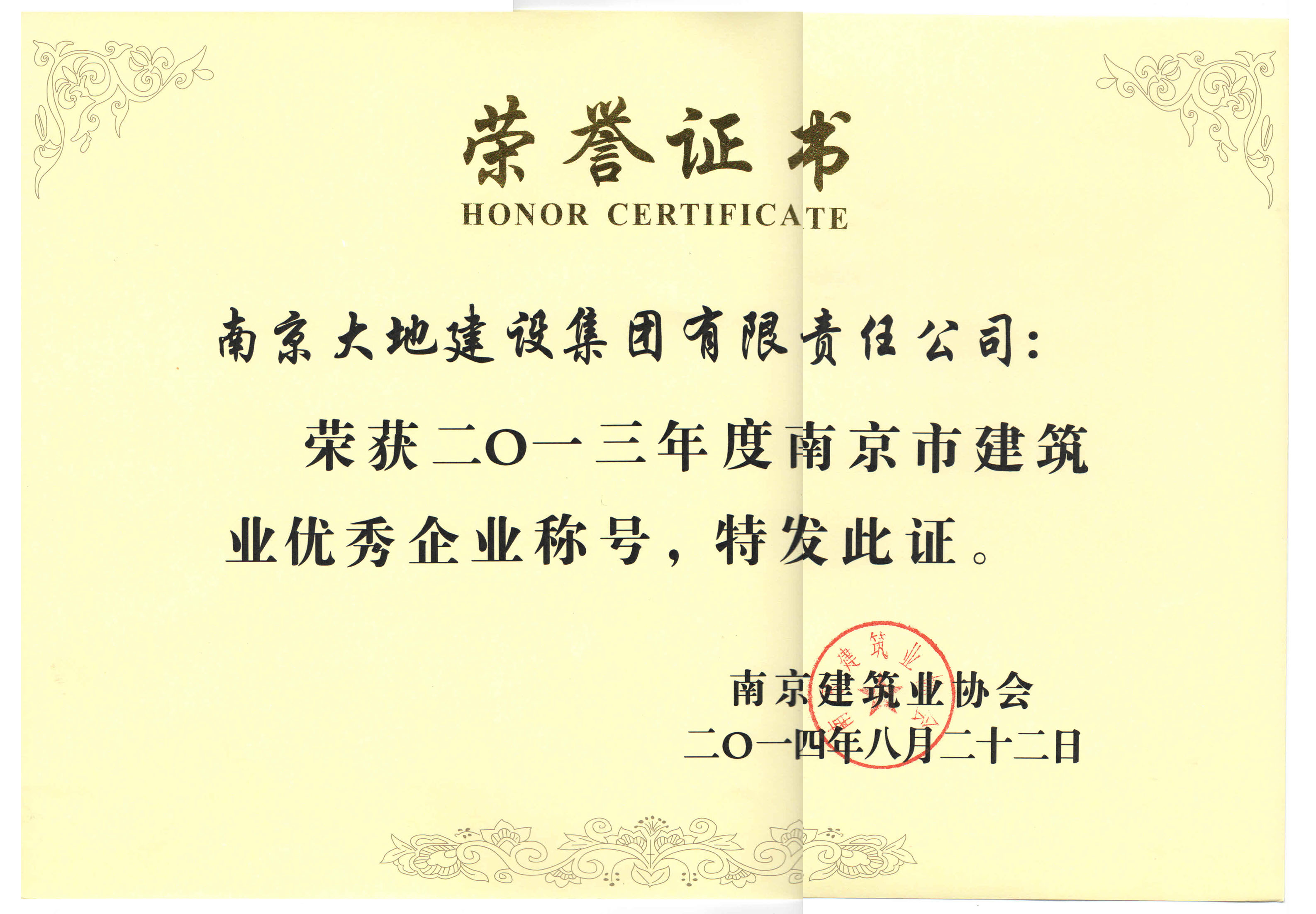 2013年度南京市建筑業“優秀企業”評選工作已經結束,在南京市建筑業協會協會審核、考評,并通過評委會審定后, 南京大地建設集團有限責任公司等46家施工企業榮獲2013年度南京市建筑業“優秀企業”稱號。