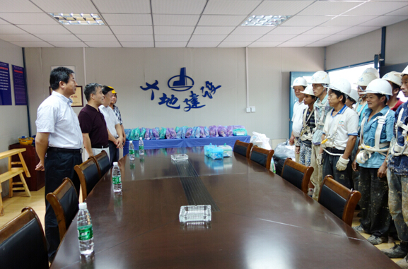 8月13日上午,南京市總工會主席劉方寧、城建工會主席劉斌等領導來到我公司圩村保障房項目部工地,親切看望慰問奮戰在一線的施工人員,集團公司黨委書記、工會主席陳慶生及股份公司相關領導陪同慰問。