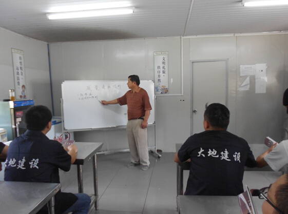 為了進一步提升項目管理水平,全面推進項目部團隊建設(shè),股份公司圩村項目部結(jié)合鐵投南站安置房項目基層黨組織聯(lián)建活動的開展,充分利用高溫錯時工作的機會,借助民工學校的平臺從多方面組織進行“民生工程黨旗紅、參建黨員爭先鋒”為主題的思想教育、專業(yè)技術(shù)以及技能培訓活動。