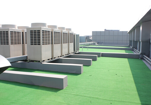 屋面面積約為4148.85m2,采用彈性體(SBS)改性瀝青防水卷材,無滲漏。塑料草坪鋪貼平整、整潔美觀,設備安裝整齊有序。