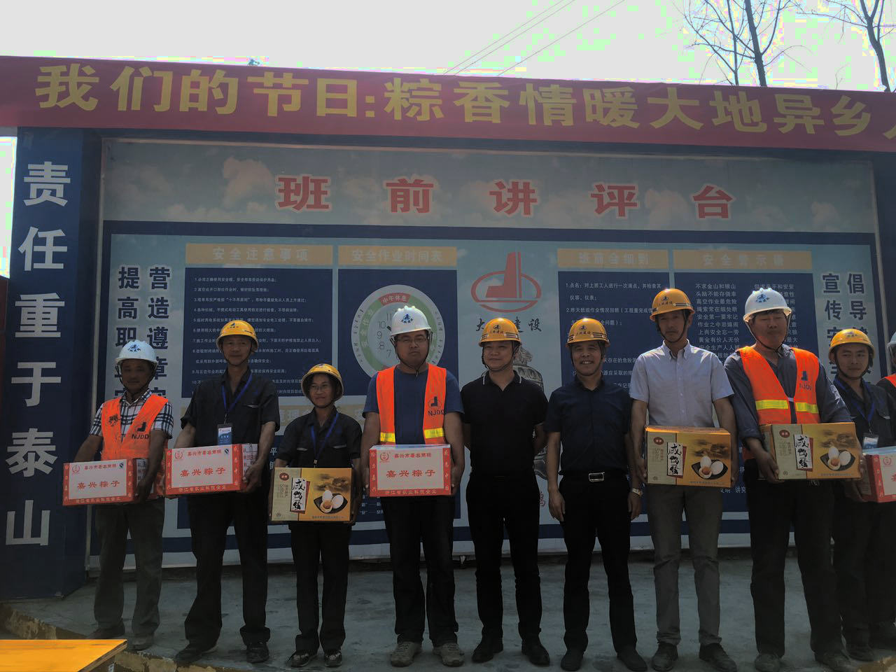 端午節前夕,集團公司就“我們的節日·粽香情暖大地異鄉人”為主題開展了端午慰問施工現場人員的活動,并準備了粽子、咸鴨蛋等慰問物品。5月27日下午由集團公司總裁江中明及黨委書記陳慶生同志帶隊,股份公司相關領導陪同前往浦口區橋林柳岸聽鶯景苑小區保障房工地對工作在一線的員工進行了慰問,親手送上節日慰問品,轉達了集團公司的問侯和祝福。總裁還仔細檢查施工現場并詢問了工程進展情況、人員的生活情況,關心大家要注意勞逸結合,注重安全生產。