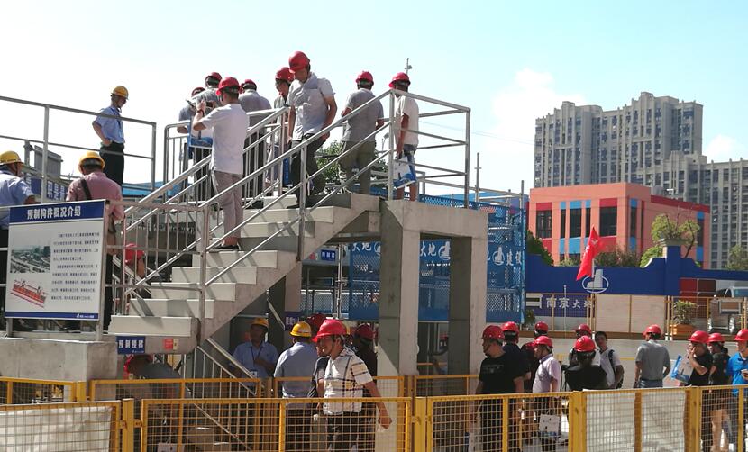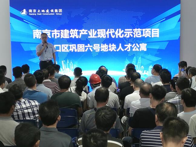 8月10日,為進一步推動南京建筑業裝配式建筑發展,促進建筑施工企業由傳統施工方式向裝配式施工轉型,“裝配式建筑•浦口行” 南京建筑業協會質量安全三年提升行動系列主題活動之一,南京裝配式建筑技術觀摩交流會在大地建設承建的浦口區鞏固六號地塊人才公寓項目隆重召開。各會員單位或相關單位技術負責人、項目經理、項目技術負責人200余人出席盛會,以專業的、廣泛的視角,觀摩交流研討目前南京市裝配式建筑發展的經驗與面臨的問題,融會各方的智慧探討裝配式建筑的未來方向,本次會議得到南京大地建設的精心組織與大力支持。