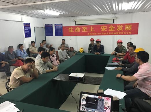安全管理,教育先行。安全月期間,各項(xiàng)目部充分利用晨會(huì)、午休、晚上等點(diǎn)滴時(shí)間,對(duì)作業(yè)人員進(jìn)行安全教育,在項(xiàng)目上下形成人人講安全,人人為安全的良好氛圍。