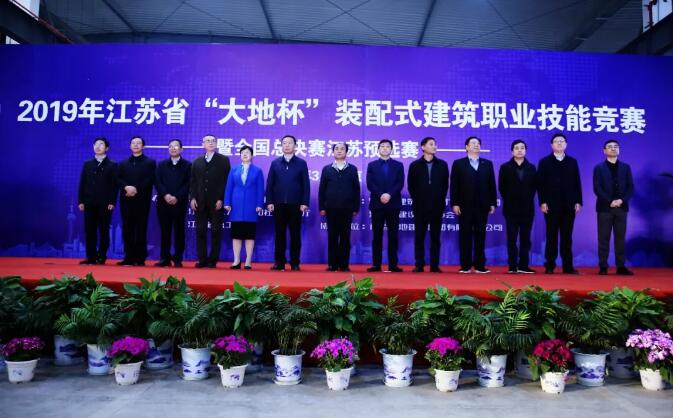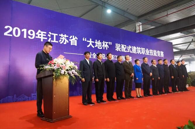 2019年3月30日上午,江蘇省“大地杯”裝配式建筑職業技能競賽在南京大地建設科技有限責任公司江北生產基地順利開幕。由江蘇省建筑產業現代化創新聯盟會長紀迅主持,南京大地建設集團伍貽安董事長致歡迎辭,江蘇省住房和城鄉建設廳顧小平書記宣布大賽開幕。