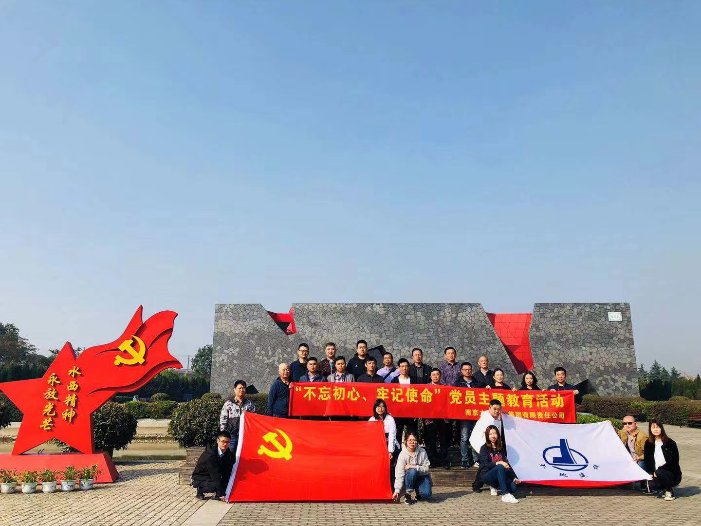 在建國70周年、建黨98周年之際,2019年10月19日南京大地建設集團有限責任公司黨委及兩個支部一行二十余名黨員、發展對象和入黨積極分子在顧衛東書記帶領下,赴溧陽市水西村新四軍江南指揮部紀念館參觀學習,開展“不忘初心、牢記使命”黨員主題教育活動。重溫革命歷史,提高黨性認識,堅定理想信念。