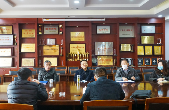 3月3日上午,南京市建筑市場監(jiān)督站黨支部書記崔勇與站長梁新華蒞臨大地建設(shè)集團(tuán),就當(dāng)前疫情防控下企業(yè)復(fù)工復(fù)產(chǎn)情況以及遇到的困難和問題進(jìn)行座談。集團(tuán)公司總裁江中明、有限責(zé)任公司總經(jīng)理洪曉明及相關(guān)部門負(fù)責(zé)人參加座談。