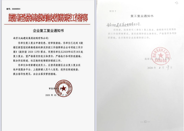 2月10日,召開疫情防控和復工復產專題視頻會議,發布《南京大地建設集團控股有限公司新型冠狀病毒感染肺炎防控工作應急預案》;