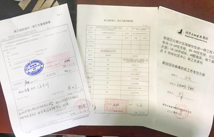 《新型冠狀病毒防疫工作專項方案》、《施工現場衛生防疫突發事件應急預案》、《反“三違”專項方案》