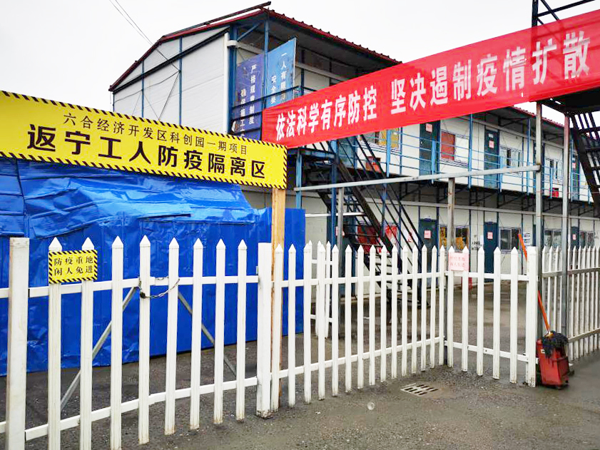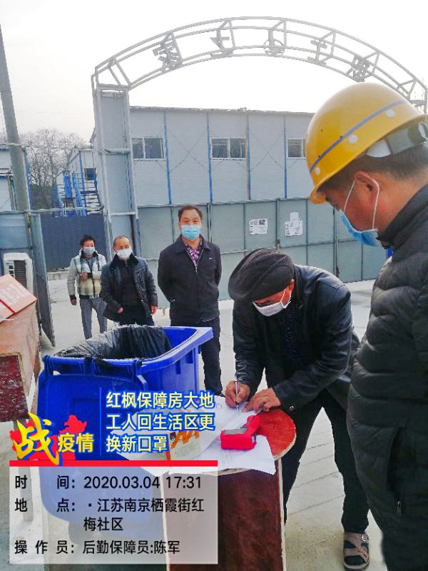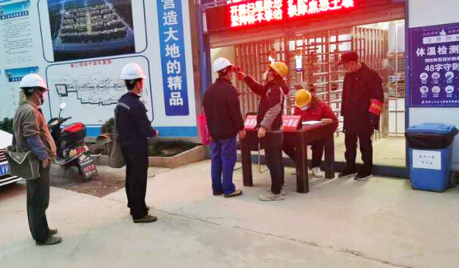 分別在辦公區、生活區、防疫隔離區、施工現場設置門崗進行嚴格的人員管控,嚴禁無關人員進入,確需進入的需佩戴口罩、測量體溫,進行登記才能進入,每天對管理人員、工人、隔離人員測量兩次體溫,做好記錄。