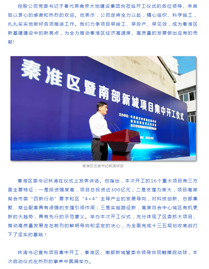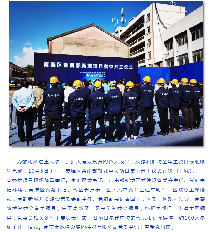 秦淮區暨南部新城項目集中開工儀式在我司土城頭一號項目現場圓滿舉辦