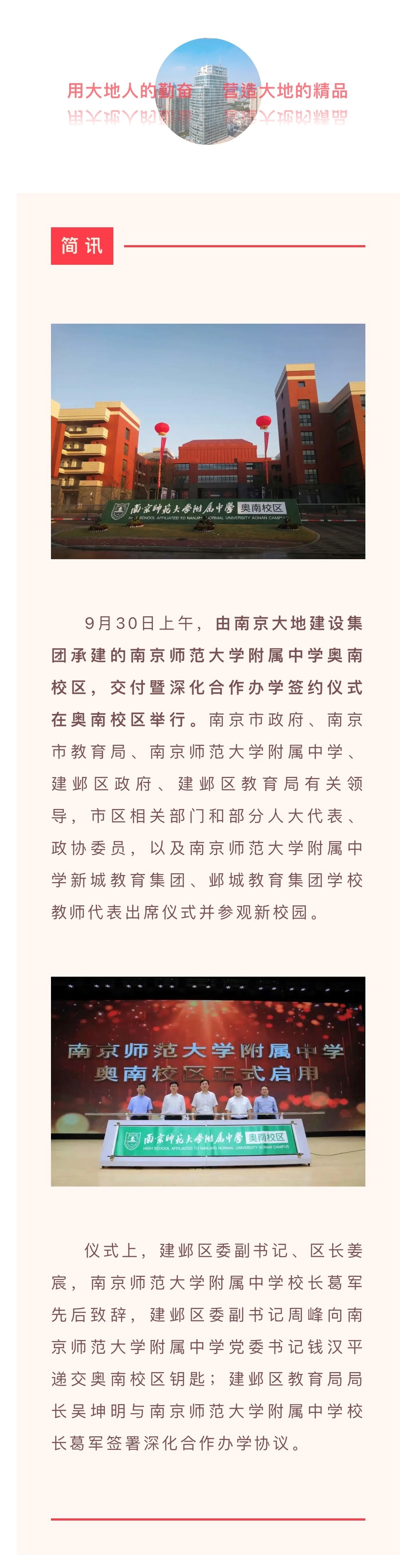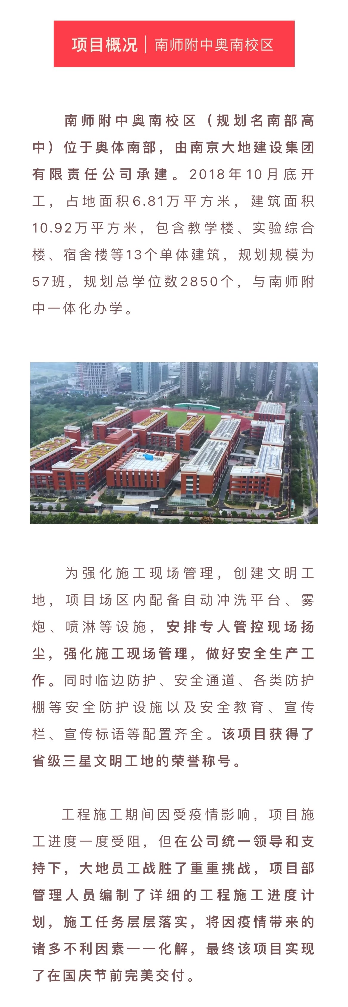 熱烈祝賀集團(tuán)承建的南京師范大學(xué)附屬中學(xué)奧南校區(qū)竣工交付